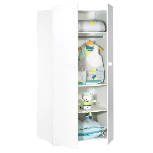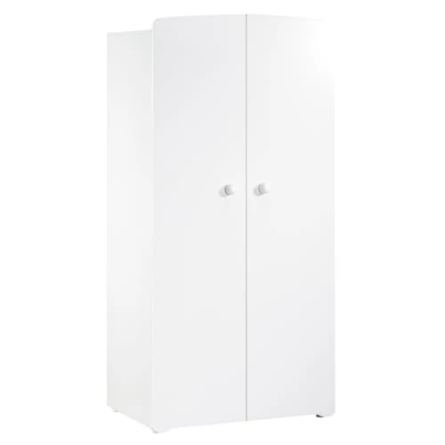 BabyPrice Armoires Enfant Armoire Bébé 2 Portes 175x85x56cm En Bois Blanc