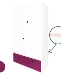 Wookids Armoires Enfant Armoire 2 Portes Façade Tiroir Prune