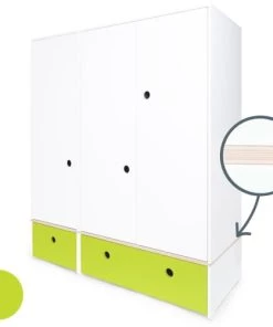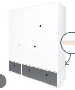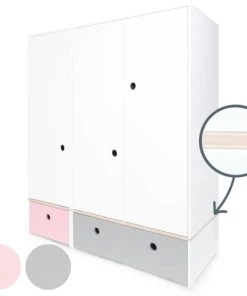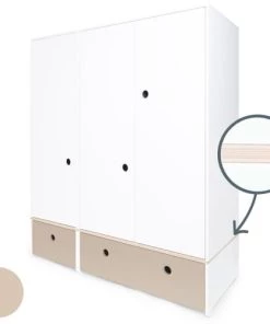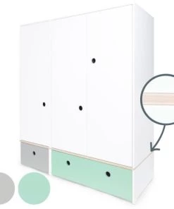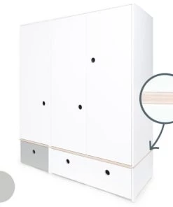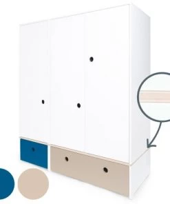 Wookids Armoires Enfant Armoire 3 Portes Façades Tiroirs Blanc