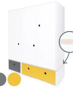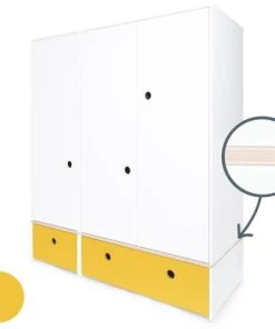 Wookids Armoires Enfant Armoire 3 Portes Façades Tiroirs Jaune