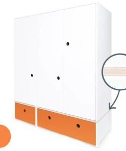 Wookids Armoires Enfant Armoire 3 Portes Façades Tiroirs Orange