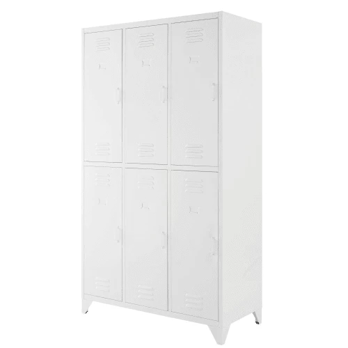 Tendance et tout en métal, le dressing vestiaire indus 6 portes en métal blanc SUNSET s’offre un petit air d’armoire de pensionnat. On adore son design épuré qui s’intégrera facilement dans tous les types de déco. Avec ses nombreuses étagères et ses parties penderie, les affaires de votre enfant ne pourront qu’être bien organisées. Ce dressing offrira une véritable flexibilité dans le rangement des vêtements grâces aux étagères et barres de penderies amovibles. Plein de style, il pourra évoluer au fil des années avec la déco de chambre de votre enfant.