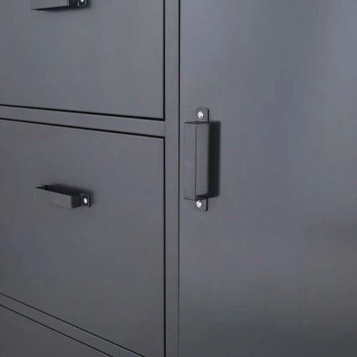Côté penderie : 1 étagère amovible et 1 barre de penderie