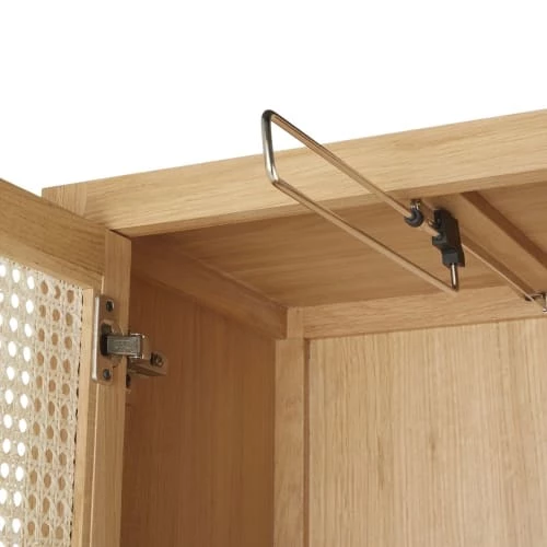 Porte et façades des tiroirs : chêne et cannage en rotin tressé