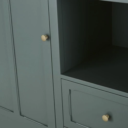 Entre classique de par son design et moderne de par sa forme cette armoire asymétrique 1 porte 3 tiroirs verte CHAMAREL est surprenante. Elle se compose d’un côté d’une penderie avec 3 étagères amovibles et d’un autre côté d’une niche et de 3 tiroirs. De quoi ranger tous les vêtements de votre enfant facilement, cette armoire asymétrique est idéale !