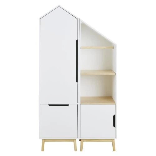 Craquez sur la bibliothèque enfant maison modulable côté gauche 1 porte blanche MIMIZAN pour ranger toutes les petites affaires de votre bout de chou. Barre de penderie en option, étagères réglables en hauteur, cette bibliothèques’adaptera à toutes vos envies et à tous vos besoins. Elle dispose également d’un tiroir dans le bas pour vous offrir un rangement supplémentaire non négligeable. Associez-la au dressing ou au côté droit de la même gamme et l’effet sera garanti !