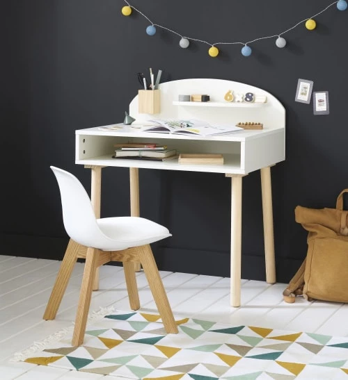 Avec lebureau enfantblanc NUAGE, votre petit artiste en herbe sera ravi ! Sobre et moderne, ce bureau blanc possède un porte-crayon, une tablette ainsi qu’une grande niche de rangement : idéal pour s’organiser. Côté déco, ses pieds en pin contraste joliment avec le blanc. Pour harmoniser son espace de travail, accompagnez ce bureau d’une jolie chaise au style scandinave dans les mêmes tons !