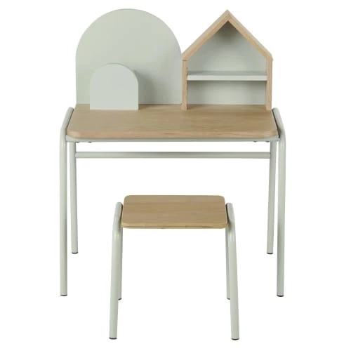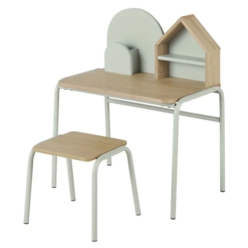 Pour un espace de travail mignon et optimal, optez pour le set bureau et chaise coloris vert et naturel ORESTAD. Ce petit bureau taille enfant original en forme de petite maison, est équipé de rangements sur le plateau et d’un pot à crayon. Il est optimal pour ceux qui sont prêts à faire parler leur créativité ! Son côté pratique : l’assise taille enfant qui accompagne le bureau. L’ensemble vert et coloris bois ira avec tous les styles de déco et vous pourrez facilement l’installer dans toute chambre d’enfant.