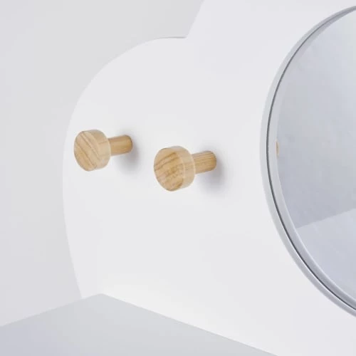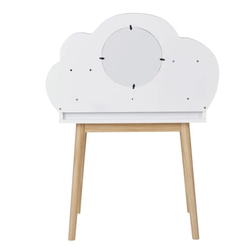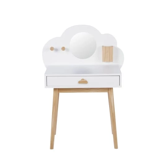La coiffeuse enfant 1 tiroir coloris blanc et naturel NUAGE ose l’originalité avec sa forme inattendue et on adore ! Son fond en forme de nuage contraste avec ses lignes minimalistes, un brin scandinaves. Sur cette coiffeuse, tout est fait pour donner envie d’être bien organisé : petit rangement, tiroir, mini patères…On a pensé à tout ! Cette coiffeuse enfant pourra être accompagnée d’un fauteuil ou d’une chaise pour que votre bout de chou soit à l’aise. Un meuble qui a tout pour plaire !