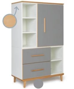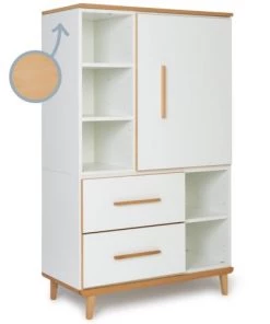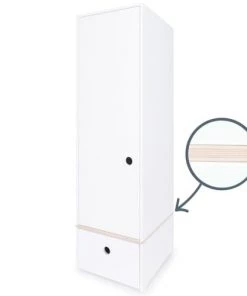 Wookids Armoires Enfant Armoire 147cm 1 Porte 2 Tiroirs Blanc