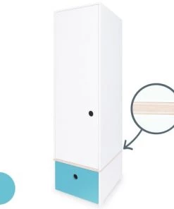 Wookids Armoires Enfant Armoire 1 Porte Façade Tiroir Bleu Ciel