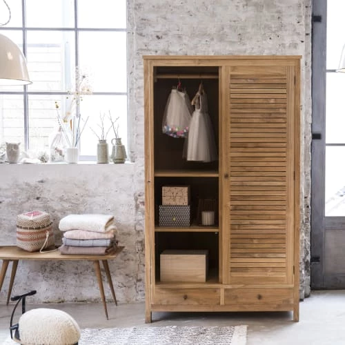 Maisons Du Monde Armoires Enfant Dressing 2 Portes Battantes Blanc Cannage En Rotin Beige