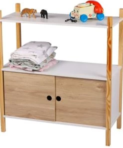 Wadiga Armoires Enfant Armoire Portes Coulissantes Bois Et Blanc Chambre Enfant – 70x30x46.5c