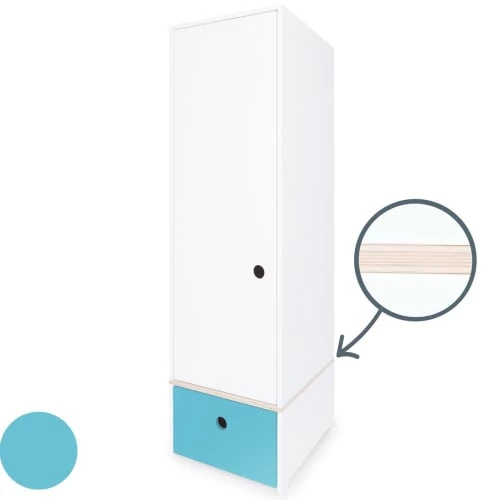 L’armoire enfant 1 porte COLORFLEX est équipée d’une grande porte et d’un tiroir, séparés par une planche de contreplaqué de bouleau. Le système de fermeture “Soft Close”, doux et silencieux, assure un maximum de confort et de sécurité.