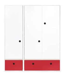 L’armoire enfant 3 portes COLORFLEX est équipée de 3 grandes portes et de 2 tiroirs, séparés par une planche de contreplaqué de bouleau. Le système de fermeture “Soft Close”, doux et silencieux, assure un maximum de confort et de sécurité.