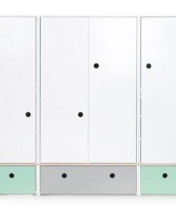 L’armoire enfant 4 portes COLORFLEX est équipée de 4 grandes portes et de 3 tiroirs, séparés par une planche de contreplaqué de bouleau. Le système de fermeture “Soft Close”, doux et silencieux, assure un maximum de confort et de sécurité.