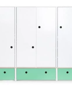 L’armoire enfant 4 portes COLORFLEX est équipée de 4 grandes portes et de 3 tiroirs, séparés par une planche de contreplaqué de bouleau. Le système de fermeture “Soft Close”, doux et silencieux, assure un maximum de confort et de sécurité.